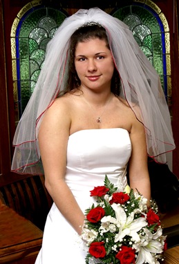 In reality, she was simply waiting to walk down the isle in a matter of minutes. A little photoshop work removed all the clutter off the table to give this a clean portrait look. =)