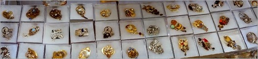 Kathy takes different pieces of jewelry that all to often gets thrown out or discarded. She then creates beautiful new one of a kind pins (and they can easily be made into a necklace). She also has bookmarks that will be the envy of all your friends, old lipstick holders (I already grabbed a few of those!) among other treasures.